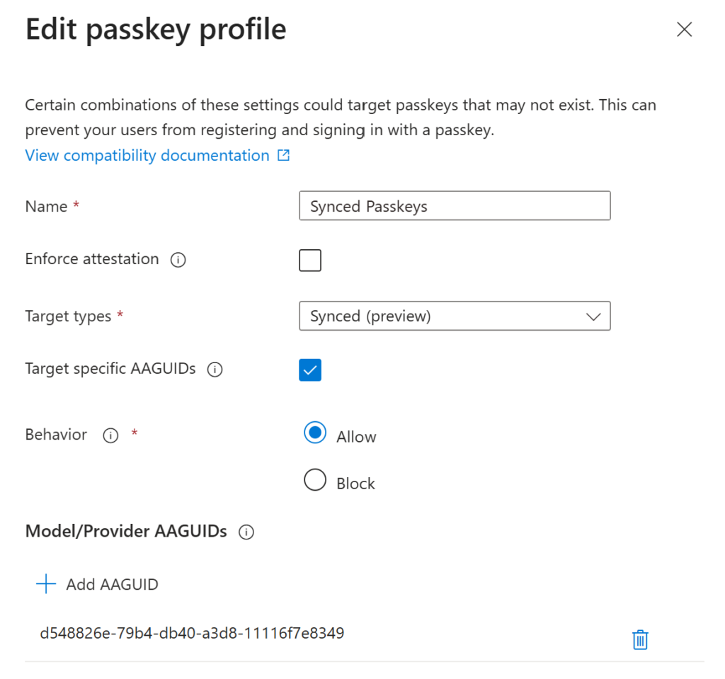 If you are using AAGUID targeting, make sure you set the right behavior. It’s set to block by default and drove me crazy creating this guide. Well, at least I can say, the block feature works đ