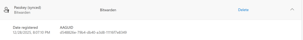 Since I only have a Microsoft 365 Business Standard subscription on my private tenant, Entra ID Basic is sufficient (at least for now in the public preview). The free version of Bitwarden should also be enough even though I have a premium subscription, so take that with a grain of salt đ